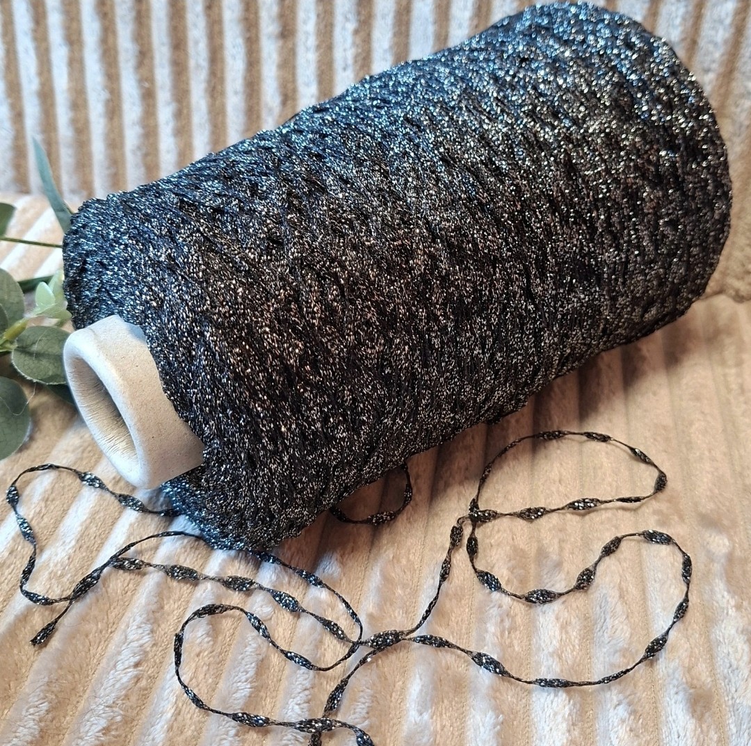 Tekstūriniai siūlai – juoda su sidabrine gija (100 g)